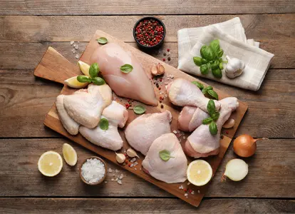 volailles entières, cuisses, pilons, filets...